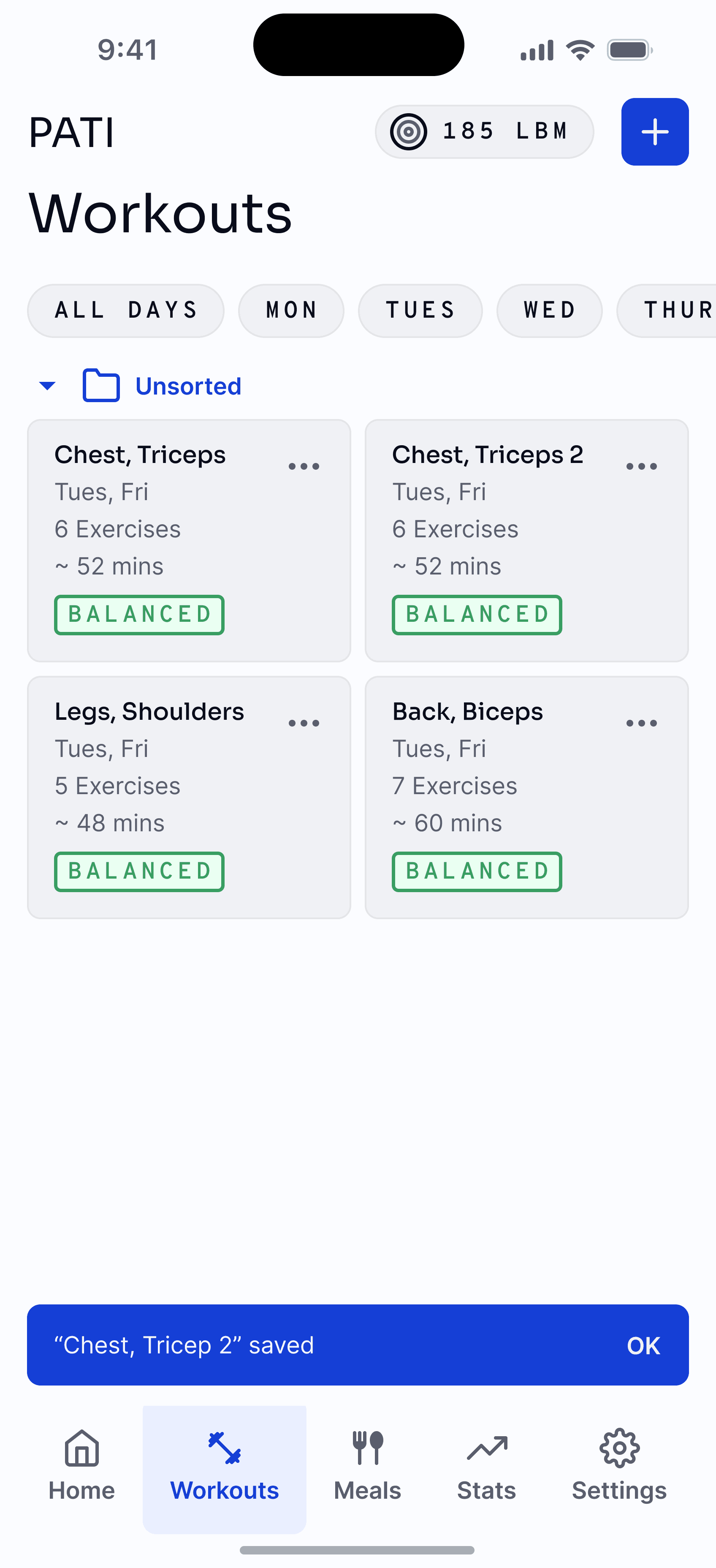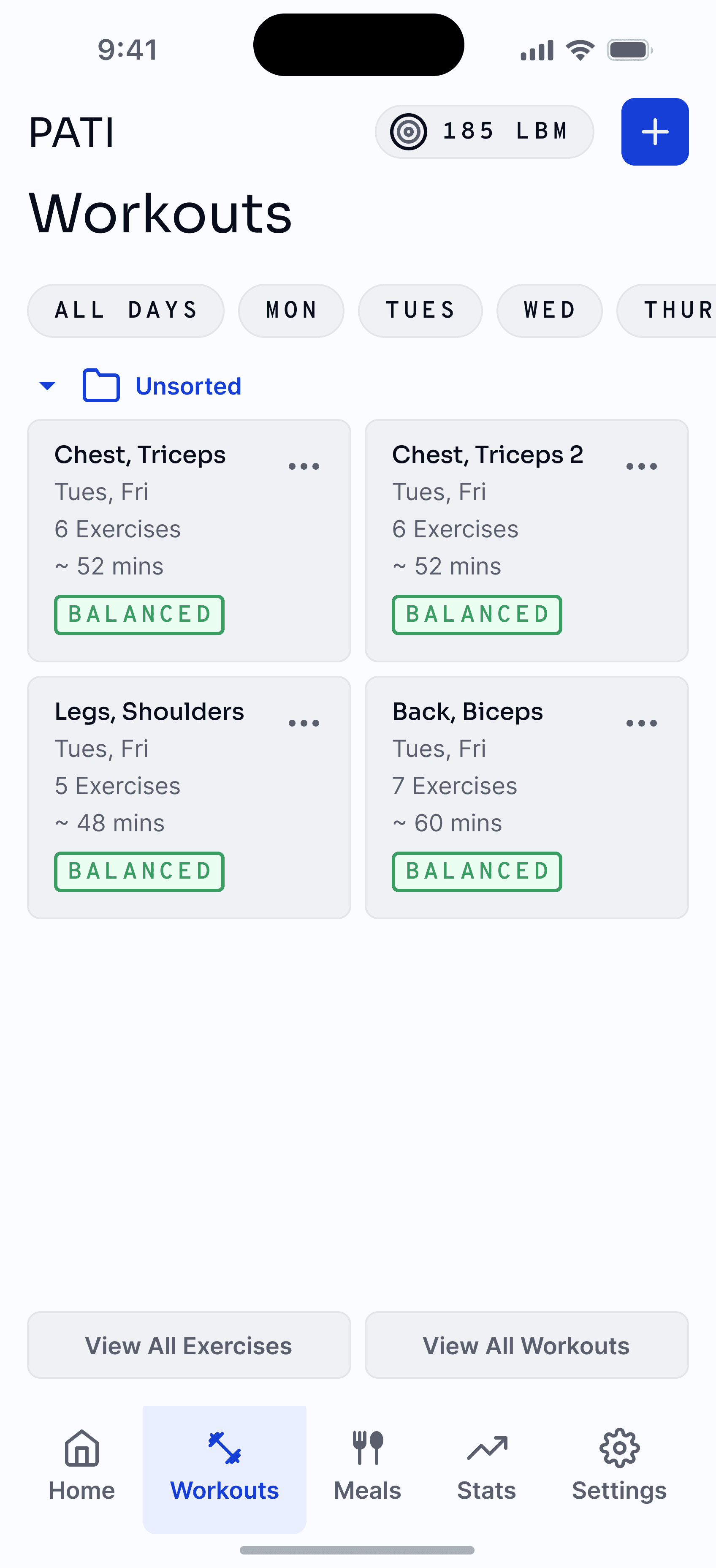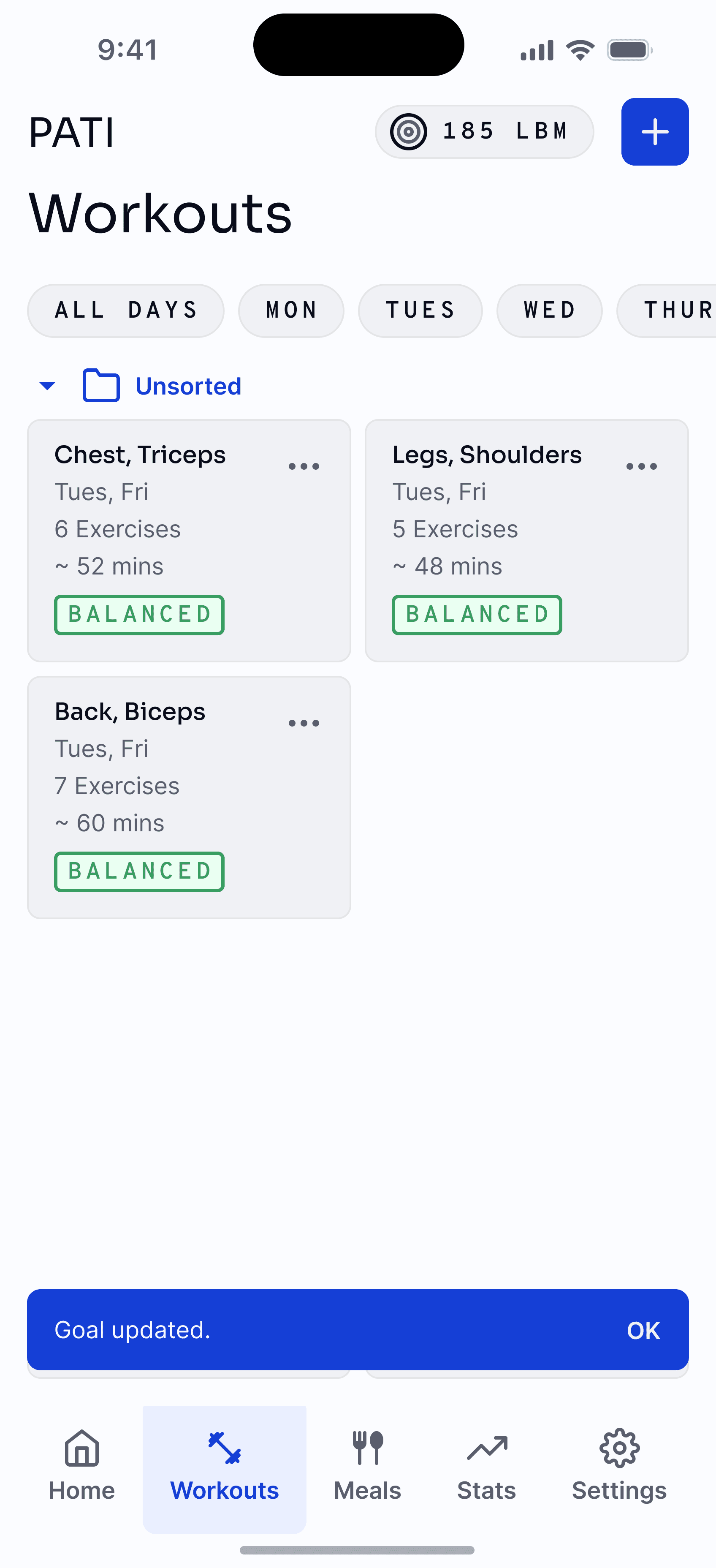PATI aims to be a central hub for all fitness activities. This includes planning workouts. Some users might not know where to start. To usher them into a safe and effective workout routine, we can configure various exercises together and use calculations like optimal volume to lift, strength standards and the like to create workouts that suit the user's preferences.