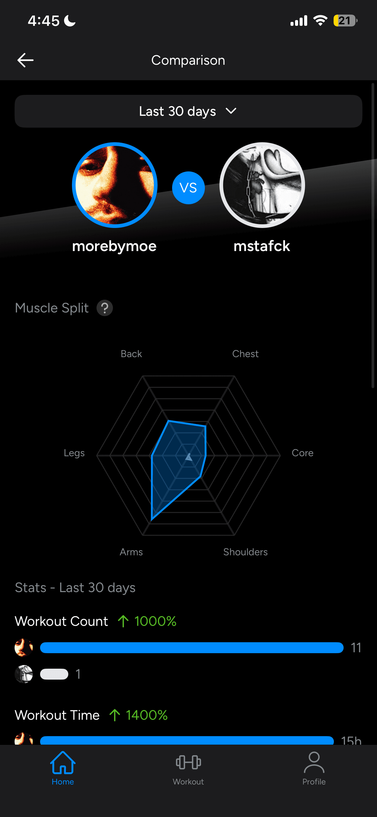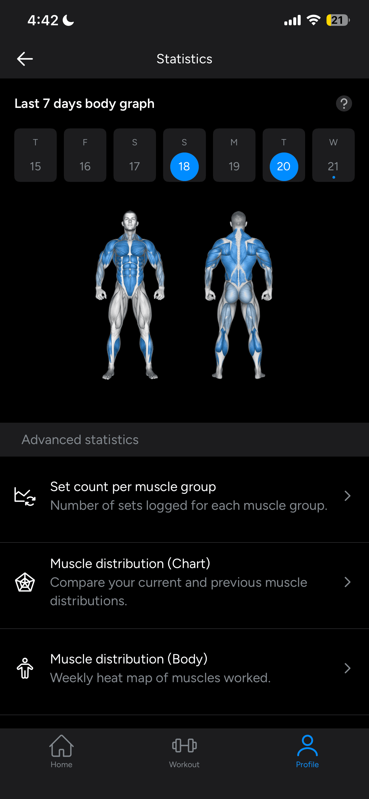 This workout tracker that is popular for its social functions including analyzing people's workouts, progress-sharing and leaderboards. It includes a ChatGPT wrapper for generating workouts. It can display previous activity via graphs and charts as well as a body map of what body parts have been exercised weekly.